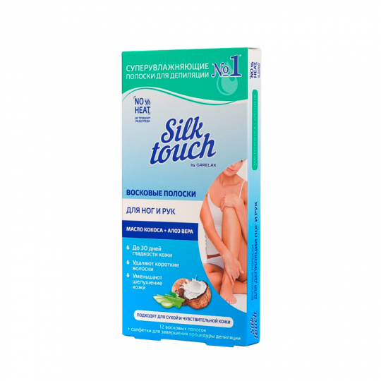 Инновационные восковые полоски SILK TOUCH с уходовым комплексом Масло Кокоса и Алоэ избавят Вас от неприглядных волосков и позаботятся о здоровье кожи после депиляции.