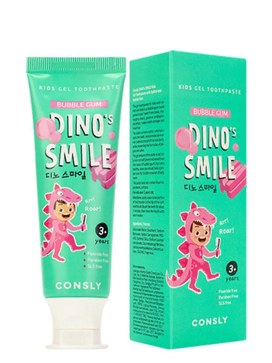 CONSLY KIDS детская гелевая зубная паста Dino's Smile с ксилитом и вкусом жвачки 60 гр